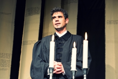 Én, Károli Gáspár, a gönci reformáltak prédikátora és Kassa völgyén tanítóknak szeniora némely jó emberem bíztatására úgy határoztam, hogy szólni kívánok hozzátok, kegyes barátaim, testvéreim, akik itt a hívásomra megjelentetek. Szándékolom ezt abból a megfontolásból, hogy megvilágítsam számotokra is az utat, mely a magyar nyelvre lefordított teljes Szentírás kibocsáttatásáig elvezetett... Tóth-Máthé Miklós kortárs drámaíró Én, Károli Gáspár című monodrámájának főszereplője Varga Sándor, a társulat színművésze, rendezője pedig Bessenyei István, a Harag György Színtársulat örökös tagja.